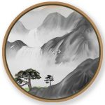 Wall Art | Mountains waterfall landscape #610 - Circular Wooden Frame | Small to XXXL Sizes • 50+ Framing Styles • Non Toxic