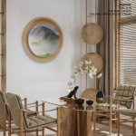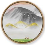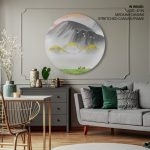 Framed Art | Mountains waterfall landscape #611 - Circular Wooden Frame | 50+ Frame Styles • Museum Quality • Made in India