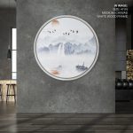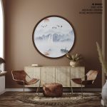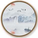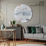 Wall Art | Mountainscape abstract - Circular Wooden Frame | Small to XXXL Sizes • 50+ Framing Styles • Non Toxic