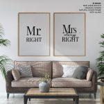 Mr and Mrs Always Right - Set of 2, Romantic Framed Wall Art, Ready to Hang - Wall Art Decor, Framed Painting, Home Decor - BestOfBharat