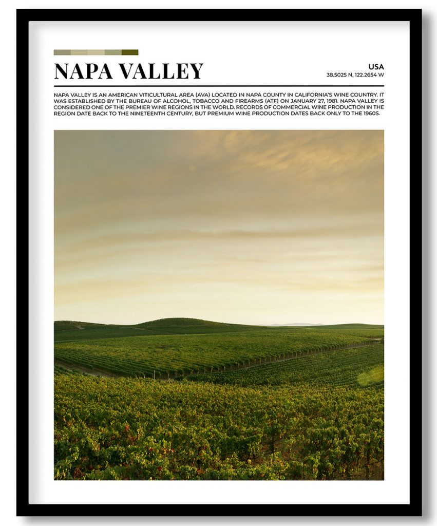 Wall Art | Napa Valley, USA pantone poster | Small to XXXL Sizes • 50+ Framing Styles • Non Toxic