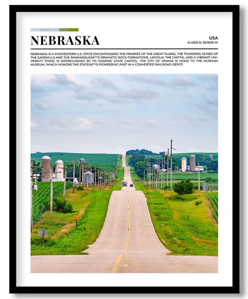 Wall Art | Nebraska, USA pantone poster | Small to XXXL Sizes • 50+ Framing Styles • Non Toxic