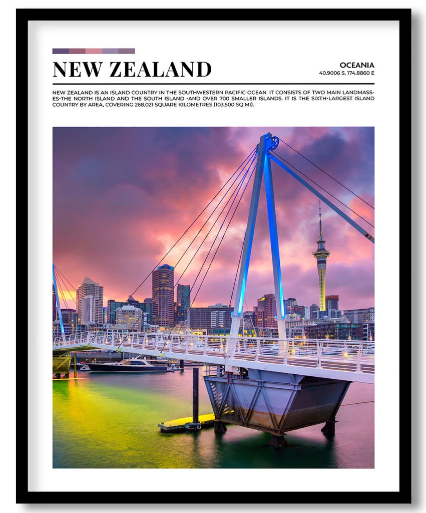 Wall Decor | New Zealand, Oceania pantone poster | Custom Size & Frame • Ready to Hang • Made in India • Eco-Friendly
