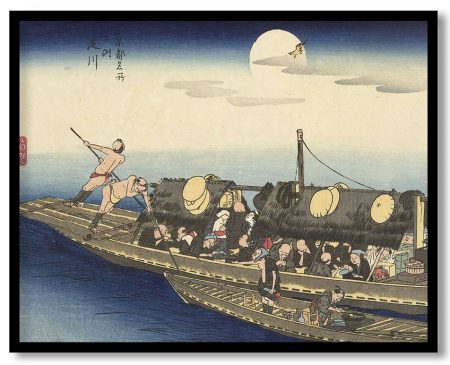 This artwork depicts Nichiren, a Buddhist monk, standing on a rock and praying while waves crash around him. The scene is set during his exile to Sado Island in Japan. The artist, Utagawa Kuniyoshi, was known for his depictions of historical and mythical figures in dramatic and dynamic poses. This piece showcases his skill in capturing movement and emotion. The use of vibrant colors and intricate details in the waves and Nichiren’s robes add to the overall impact of the artwork. Created on paper between 1833 and 1837, this piece is a prime example of the ukiyo-e style of Japanese woodblock printing.
