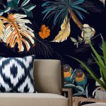 Orange Monstera - Mural Wallpaper, PVC Free, Non-Toxic - Non Toxic Wall Paper Decor, Home & Office Decor - BestOfBharat