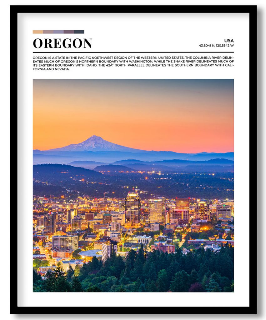 Wall Art | Oregon, USA pantone poster | Small to XXXL Sizes • 50+ Framing Styles • Non Toxic