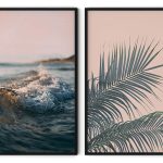 Palm Leaf and Beach Framed Wall Art (Set of 2), Nature Art, Modern Art, Photography - Choose Size and Frame Color