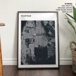 Framed Art | Pantone above blue map of Khartoum | 50+ Frame Styles • Museum Quality • Made in India