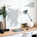 Wall Art | Pantone above white map of Santiago | Small to XXXL Sizes • 50+ Framing Styles • Non Toxic