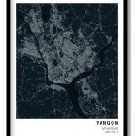 Framed Art | Pantone below blue map of Yangon | 50+ Frame Styles • Museum Quality • Made in India