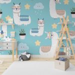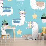 Pastel seamless white cute llama - Non Toxic Wall Paper Decor, Home & Office Decor - BestOfBharat