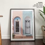 Wall Decor | Pink and blue building architecture | Custom Size & Frame • Ready to Hang • Made in India • Eco-Friendly