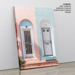 Wall Decor | Pink and blue building architecture | Custom Size & Frame • Ready to Hang • Made in India • Eco-Friendly