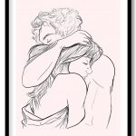 Wall Art | Pink black couple hugging | Small to XXXL Sizes • 50+ Framing Styles • Non Toxic