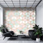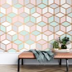 Pink with white lines geometric - Mural Wallpaper, PVC Free, Non-Toxic - Non Toxic Wall Paper Decor, Home & Office Decor - BestOfBharat
