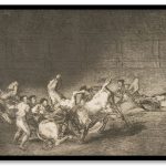 Plate 32 from the 'Tauromaquia':Two teams of picadors thrown one after the other by a single bull. by Francisco Goya (1816)