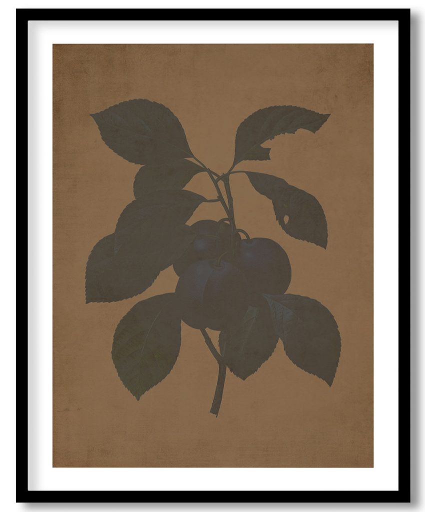 Wall Art | Plum fruit botanical - Walnut Pressed | Small to XXXL Sizes • 50+ Framing Styles • Non Toxic