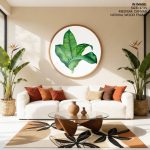 Wall Art | Portrait sword leaves - Circular Wooden Frame | Small to XXXL Sizes • 50+ Framing Styles • Non Toxic