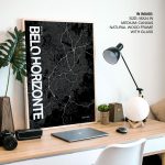 Wall Art | Belo Horizonte Map Art, Black & White, Poster style framed wall art | Small to XXXL Sizes • 50+ Framing Styles • Non Toxic