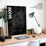Wall Art | Indore Map Art, Black & White, Poster style framed wall art | Small to XXXL Sizes • 50+ Framing Styles • Non Toxic