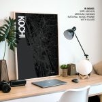 Wall Art | Kochi Map Art, Black & White, Poster style framed wall art | Small to XXXL Sizes • 50+ Framing Styles • Non Toxic