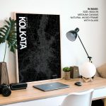 Wall Decor | Kolkata Map Art, Black & White, Poster style framed wall art | Custom Size & Frame • Ready to Hang • Made in India • Eco-Friendly