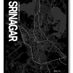 Srinagar Map Art, Black & White, Poster style framed wall art - Wall Art, Hanging Wall Decor, Home Decor - BestOfBharat