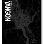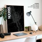 Yangon Map Art, Black & White, Poster style framed wall art