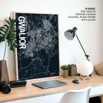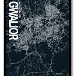 Wall Art | Gwalior Map Art, Dark Blue poster style, Ready to hang wall art | Small to XXXL Sizes • 50+ Framing Styles • Non Toxic