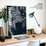 Khartoum Map Art, Dark Blue poster style, Ready to hang wall art