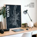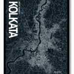 Wall Art | Kolkata Map Art, Dark Blue poster style, Ready to hang wall art | Small to XXXL Sizes • 50+ Framing Styles • Non Toxic