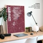 Wall Art | Amravati Map Art, Red & Blue, Ready to hang, Framed Wall art | Small to XXXL Sizes • 50+ Framing Styles • Non Toxic