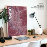 Dhaka Map Art, Red & Blue, Ready to hang, Framed Wall art