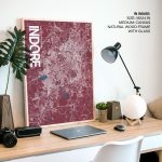 Framed Art | Indore Map Art, Red & Blue, Ready to hang, Framed Wall art | 50+ Frame Styles • Museum Quality • Made in India