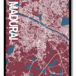 Wall Art | Madurai Map Art, Red & Blue, Ready to hang, Framed Wall art | Small to XXXL Sizes • 50+ Framing Styles • Non Toxic