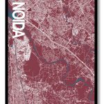 Noida Map Art, Red & Blue, Ready to hang, Framed Wall art