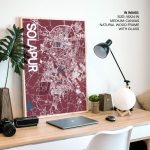 Wall Art | Solapur Map Art, Red & Blue, Ready to hang, Framed Wall art | Small to XXXL Sizes • 50+ Framing Styles • Non Toxic