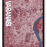 Varanasi Map Art, Red & Blue, Ready to hang, Framed Wall art - Wall Art, Hanging Wall Decor, Home Decor - BestOfBharat