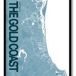 The Gold Coast Blue Map Art, Poster style, Framed & Ready to hang wall art