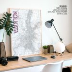 Wall Decor | Kolkata White Map Art, Poster style, Framed & Ready to hang wall art | Custom Size & Frame • Ready to Hang • Made in India • Eco-Friendly
