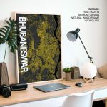 Bhubaneswar Map Art, Yellow-Black, Poster style, Framed & Ready to hang wall art