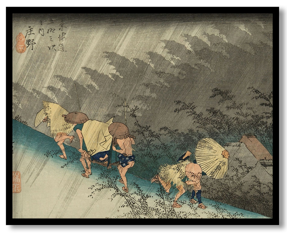 Framed Art | Rainstorm, Shono, from the series the Fifty-three Stations of the Tokaido (Hoeido edition) by Utagawa Hiroshige (ca.1833) | 50+ Frame Styles • Museum Quality • Made in India