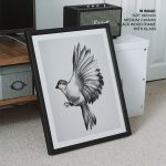 - Material: You can choose between different print mediums (Glicee paper or Canvas) and 40+ framing options that you can see on the website. Any order above 18x24 inches is processed in pinewood since synthetic wood is not able to bear its load. Wherever applicable, acrylic glass is used instead of normal glass, for its ease of handling and recyclability.