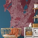 Mumbai Map Wall Mural - Red blue, Mural Wallpaper, PVC Free, Non-Toxic - Non Toxic Wall Paper Decor, Home & Office Decor - BestOfBharat