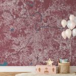 Pune Map Wall Mural - Red blue, Mural Wallpaper, PVC Free, Non-Toxic