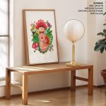 Wall Art | Red green portrait of Frida Kahlo | Small to XXXL Sizes • 50+ Framing Styles • Non Toxic