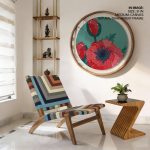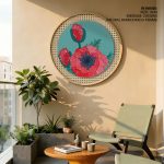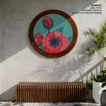 Wall Decor | Red opiate flower #271 - Circular Wooden Frame | Custom Size & Frame • Ready to Hang • Made in India • Eco-Friendly