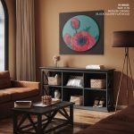 Wall Decor | Red opiate flower #271 - Circular Wooden Frame | Custom Size & Frame • Ready to Hang • Made in India • Eco-Friendly
