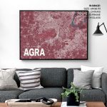 Wall Art | Red poster map of agra | Small to XXXL Sizes • 50+ Framing Styles • Non Toxic