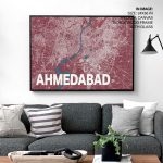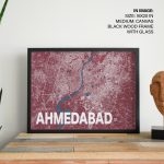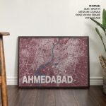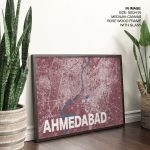 Wall Decor | Red poster map of ahmedabad | Custom Size & Frame • Ready to Hang • Made in India • Eco-Friendly